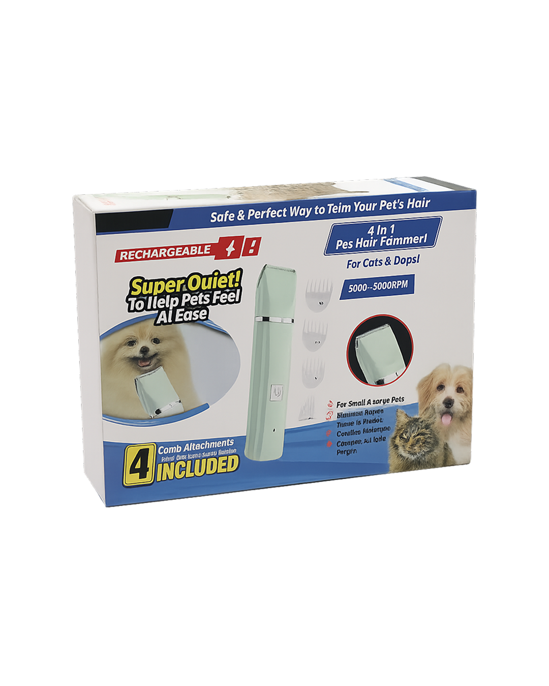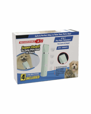 Kjo makinë qethëse 4 në 1 është një zgjidhje praktike dhe e sigurt për mirëmbajtjen e qimeve të qenve dhe maceve.
