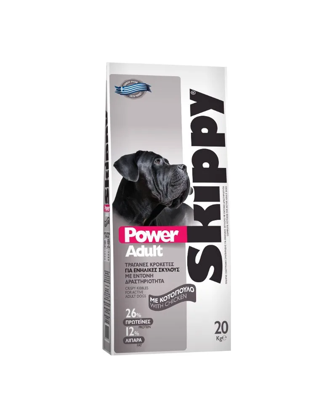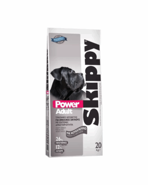 Skippy Power Adult është ushqim i plotë dhe i balancuar për qen të rritur me aktivitet të lartë.